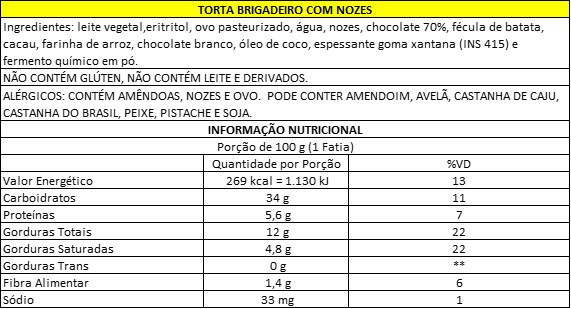 Especificações para Torta Brigadeiro com Nozes (sem açúcar)